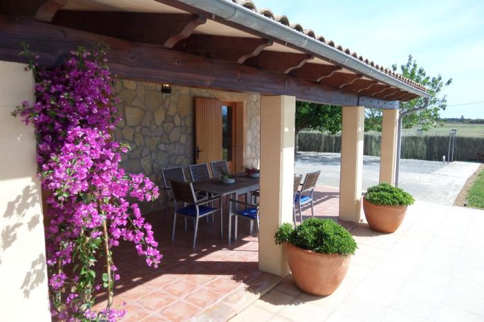 - große überdachte Terrasse mit einem Esstisch zum Einnehmen der Mahlzeiten im Freien