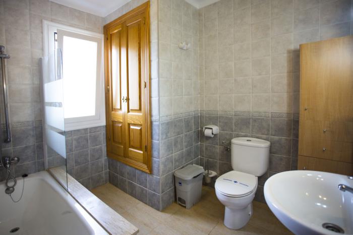 - 2 geräumige Schlafzimmer mit je 2 Einzelbetten ( 0,90 x 2,00 m ) – beide mit großzügigem Bad en suite mit Dusche oder Badewanne/Dusche, jeweils direkter Ausgang zur Terrasse