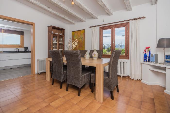 Zwischen Pollenca und Puerto Pollenca, in ruhiger Lage, befindet sich dieses im traditionellen Stil erbaute Ferienhaus für 6 Personen. Das große Grundstück ist komplett umzäunt und beinhaltet einen gepflegten Garten mit Zitronen-, Olivenbäumen und Palmen. Der 12m x 6m große, mit Treppeneinstieg versehene Pool ist von einem großzügigen, mit Steinplatten verlegten Bereich umgeben, auf dem bequeme Liegestühle aufgestellt werden können. Entsprechendes Terrassenmobiliar mit schattenspendenden Sonnenschirmen ist vorhanden. Im überdachten Grillbereich erwartet Sie ein gemauerter Grill, auf dem leckere Gerichte zubereitet werden können.